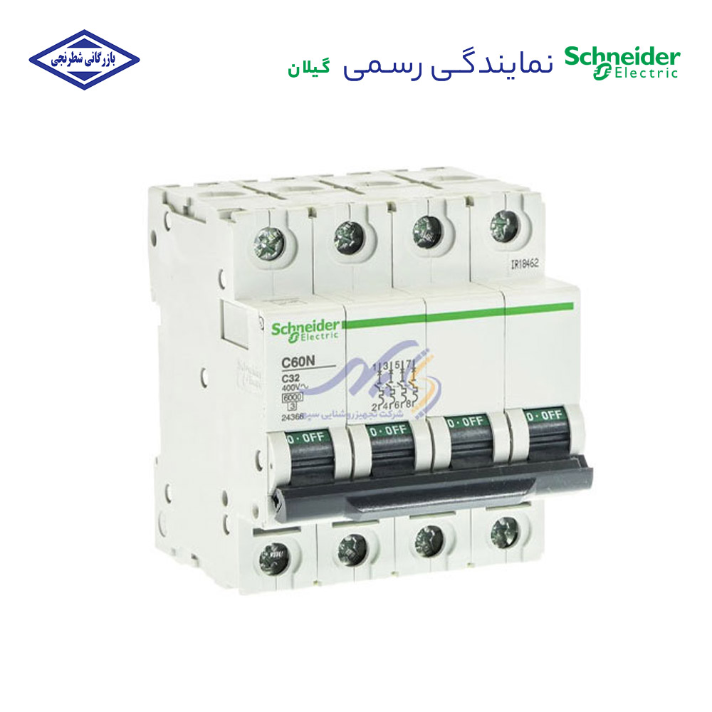 کلید مینیاتوری چهار پل اشنایدر تیپ C از 1 تا 63 آمپر